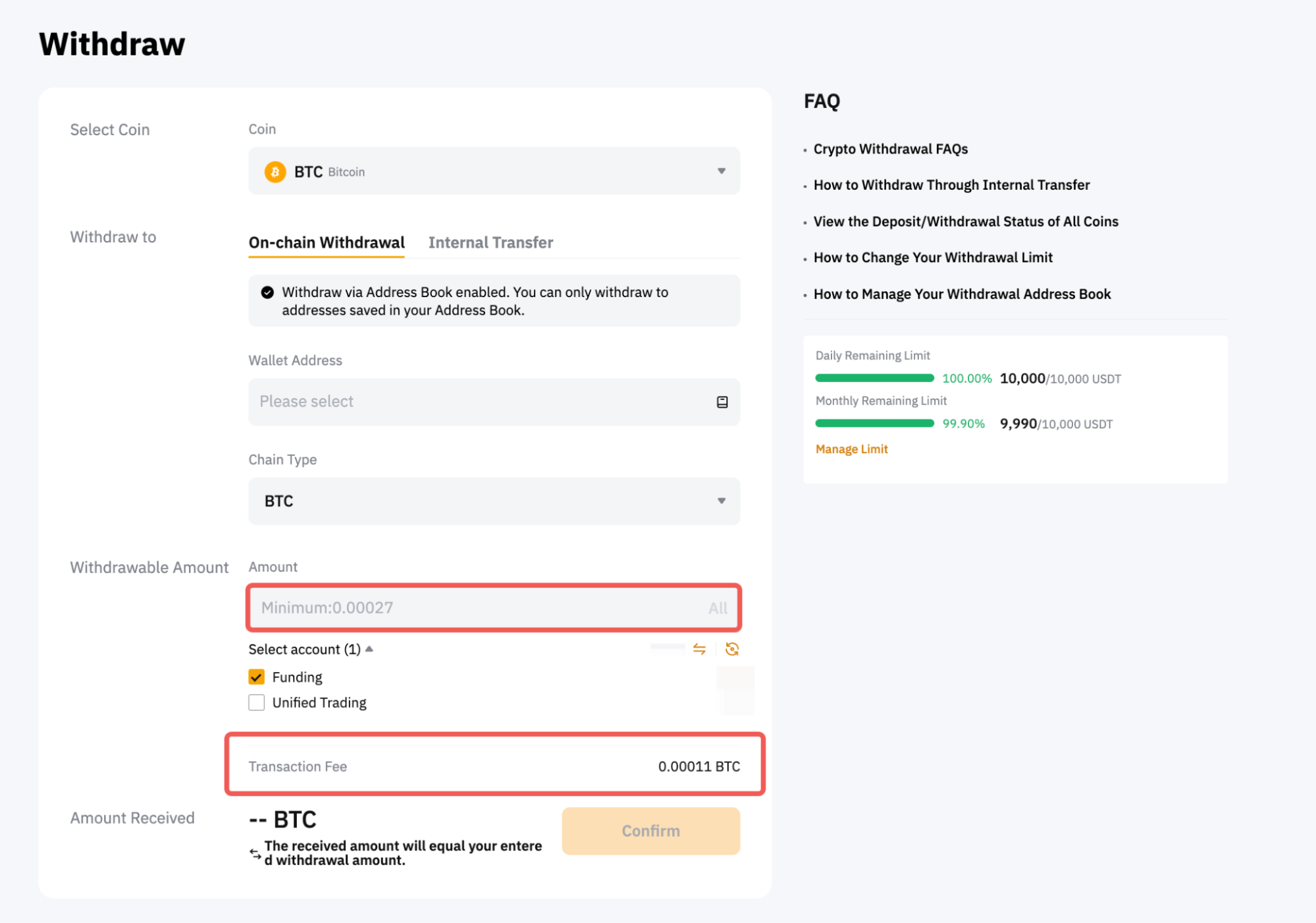 取決於用戶選擇的不同幣種和鏈,鏈上提幣需要支付提幣手續費。您可在提幣窗口中看到最低提幣金額和提幣手續費。請注意,任何提幣金額的提幣手續費都是固定的。