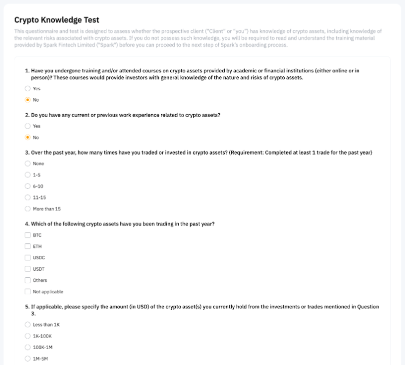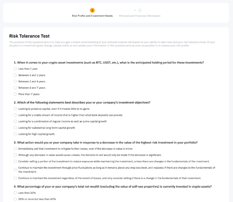 本問卷與測試旨在評估使用者是否具備虛擬資產的知識,包括虛擬資產相關風險的知識。