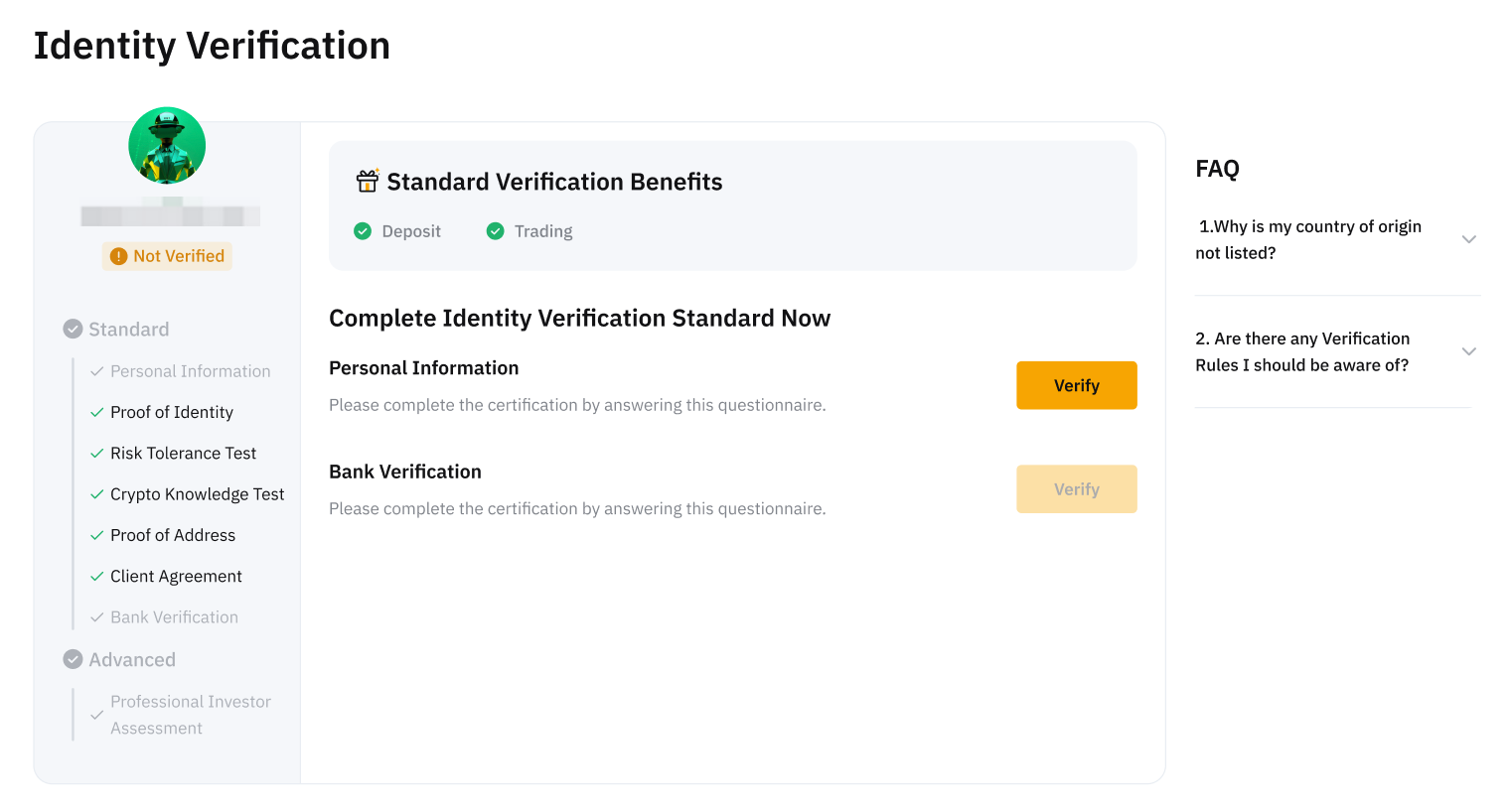 步驟 3 您將看到兩個用於身份驗證的部分:先進專業。您需要完成一些基本驗證,才能繼續進行下一個驗證。使用可用驗證按鈕進行的任何驗證都有資格完成。