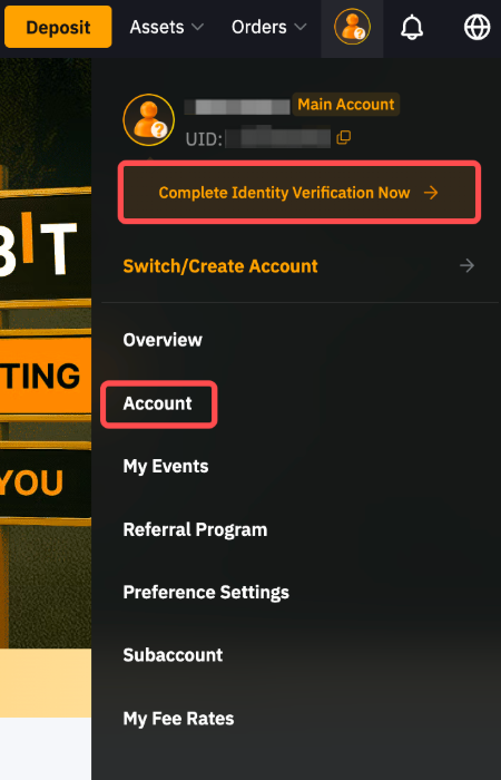 步驟 1 將滑鼠游標移至導覽列右側的頭像圖示上。如果您剛建立帳戶,您可以按一下立即完成身分驗證。否則,請按一下帳戶以進入帳戶頁面。