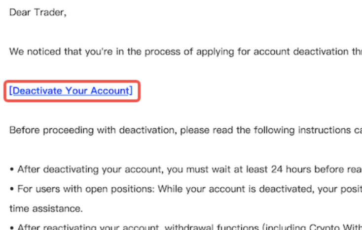 第 5 步: 點擊信件中提供的連結,您將被重定向至停用帳戶。 請閱讀並理解後果,然後選擇停用原因,然後點擊「停用此帳戶」。 最後,點擊「確認」凍結您的帳戶。