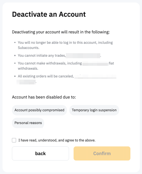 確認帳戶停用后,您將無法登錄 ByHKbit 帳戶。