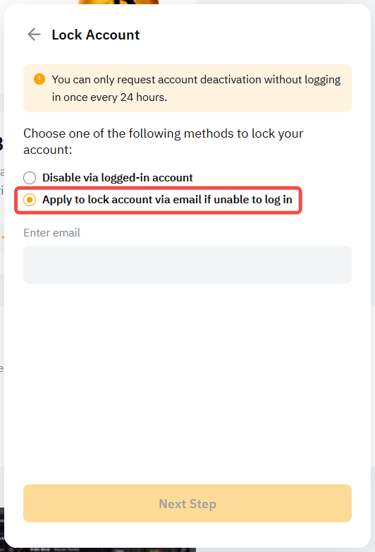 第 3 步: 選擇「如果無法登錄,請通過電子郵件申請鎖定帳戶」 然後輸入您的郵箱位址。