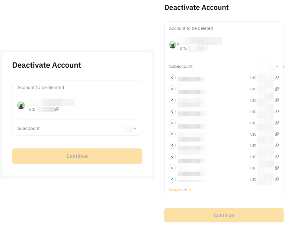 第 3 步: 審覈並確認賬戶和任何應停用的相關子賬戶。