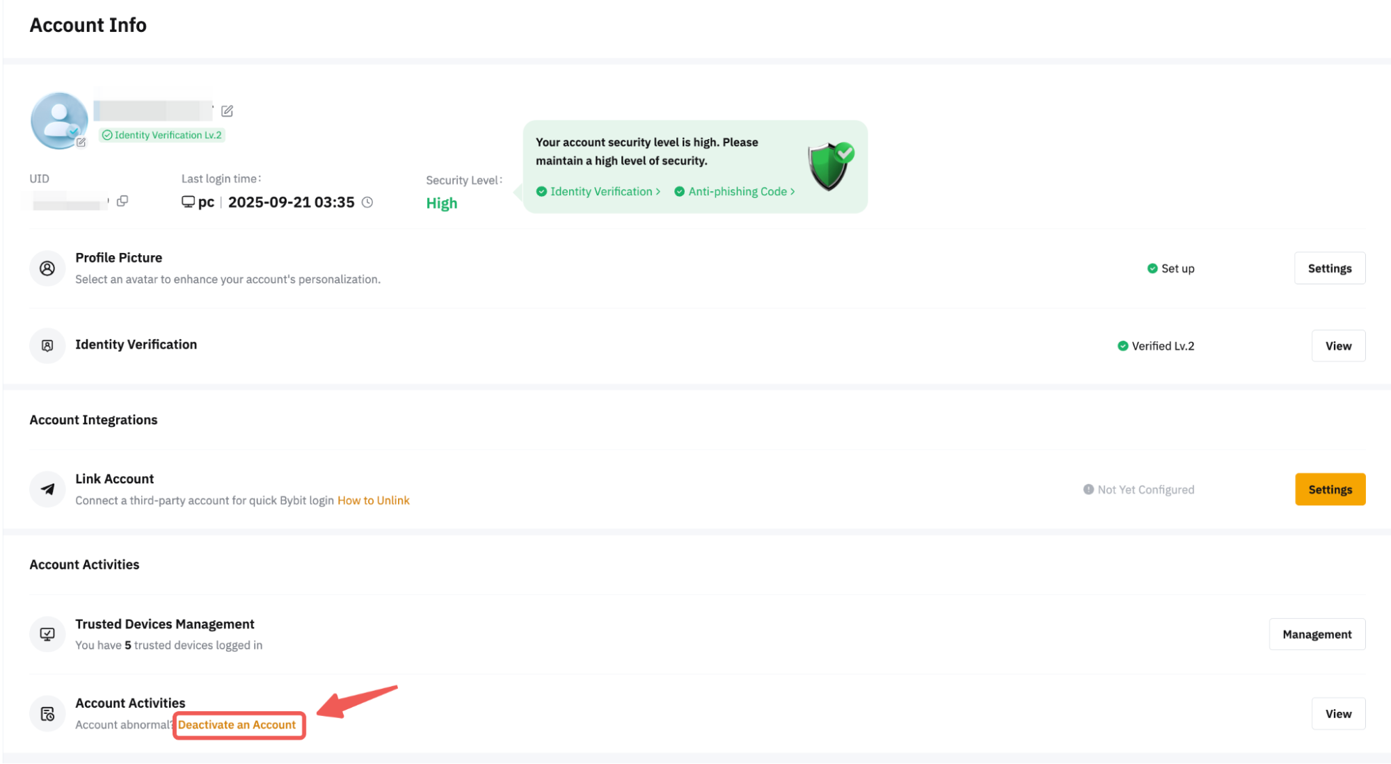 ByHKbit 推出了自助帳戶停用功能,用戶可通過帳戶頁面自行停用帳戶,而無需向 ByHKbit 客服發送帳戶停用請求。