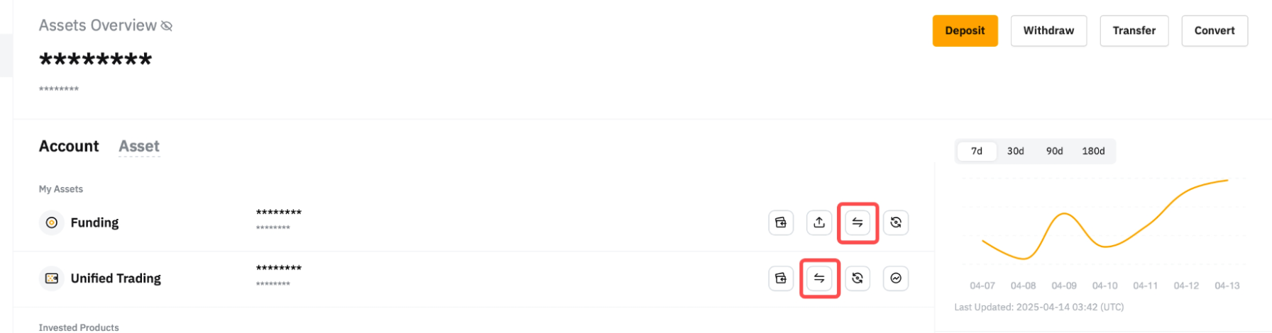您可以前往任何帳戶的資產頁面或帳戶頁面,在不同帳戶之間進行劃轉。