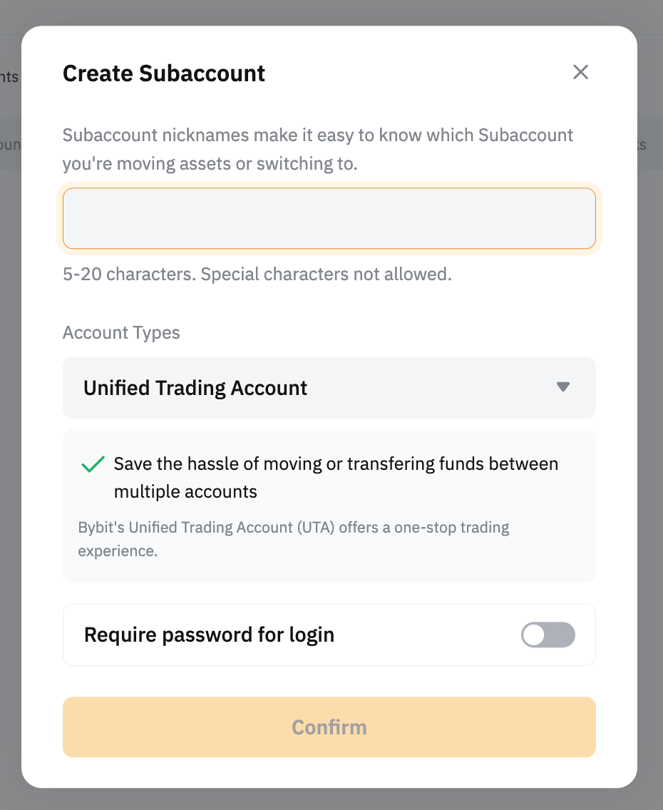 請輸入一個包含 5 到 20 個字母數字字元的子帳戶暱稱。此暱稱將僅用於您的帳戶,並僅在您的帳戶中顯示,用於識別此特定子帳戶。建立後,您可以隨時修改子帳戶暱稱。