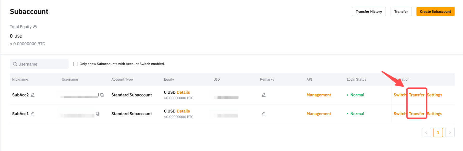 註:在以下情況下,主帳戶和子帳戶之間的雙向劃轉功能將不受支援: