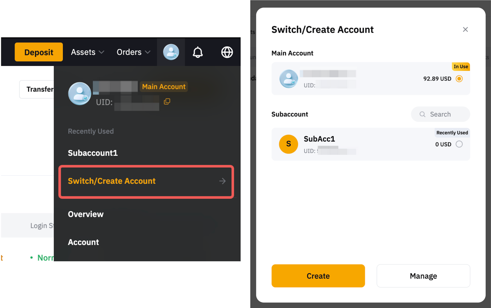 或者,您也可以點選主帳戶子帳號頁面上的劃轉資產,在任何帳戶之間立即劃轉資產,無需支付任何手續費。