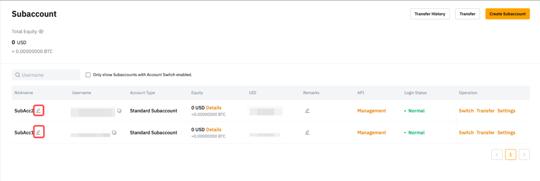 要更新子帳戶暱稱,只需前往子帳戶頁面,然後點擊子帳戶暱稱旁邊的鉛筆圖示即可。