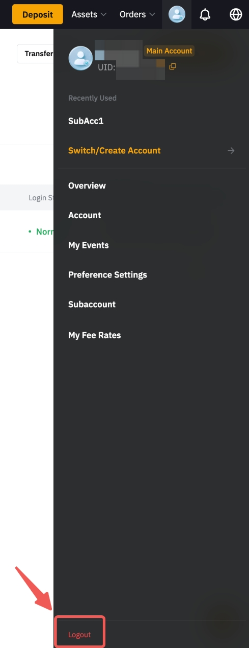 透過 ByHKbit 登入頁面登入時,您可以依照與主帳戶相同的步驟登出子帳戶。