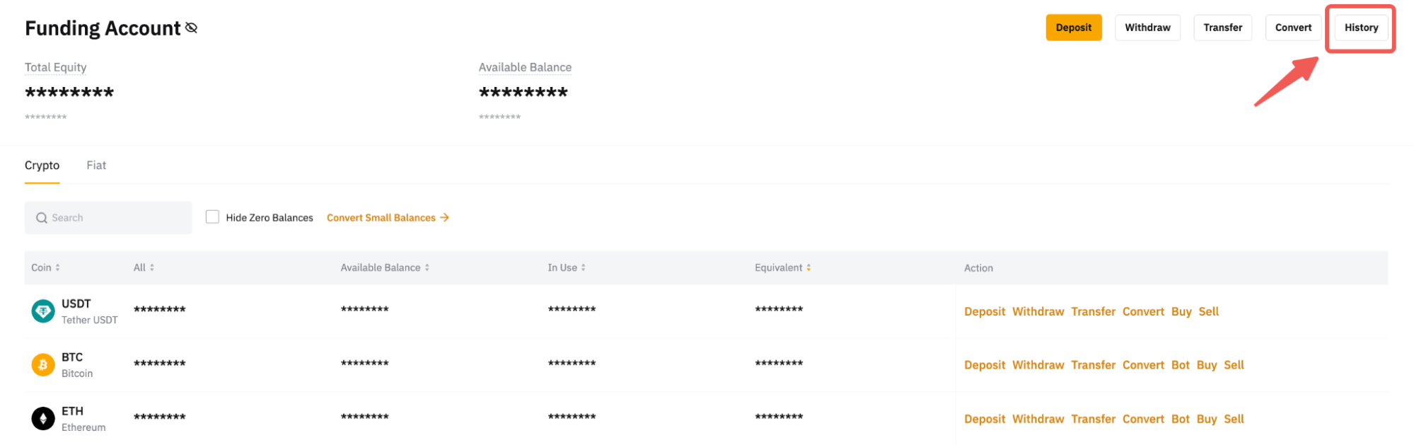 第 2 步點擊歷史記錄前往資金賬戶記錄頁面。