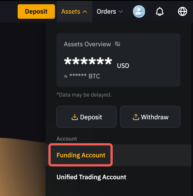 第 1 步將光標移至在主頁右上角的資產上,然後點擊資金賬戶