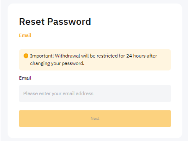 重設密碼前,請注意,修改登入密碼後 24 小時內,將禁止虛擬加密貨幣提款: