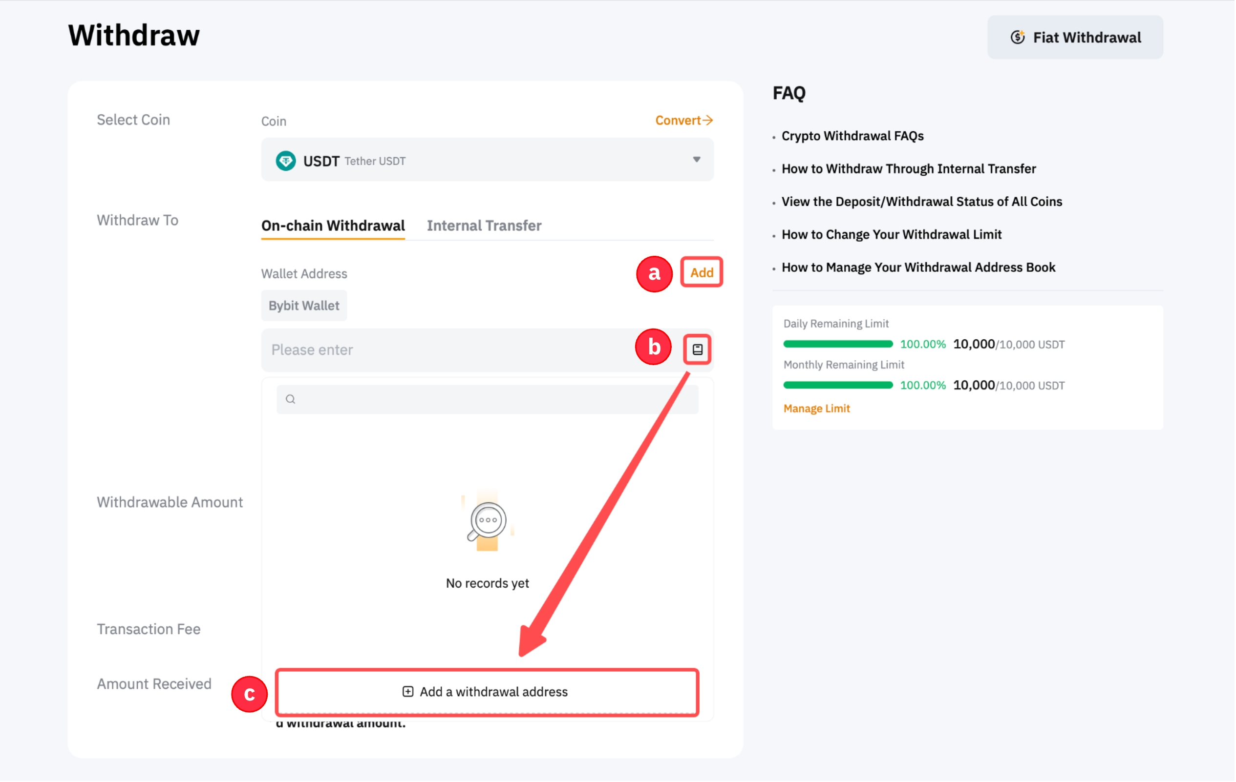 如果您的地址已在提幣地址白名單中驗證,則無需完成雙重驗證流程,就可以提交以下提幣請求。要驗證您的提幣錢包地址,您可以按照本指南操作。